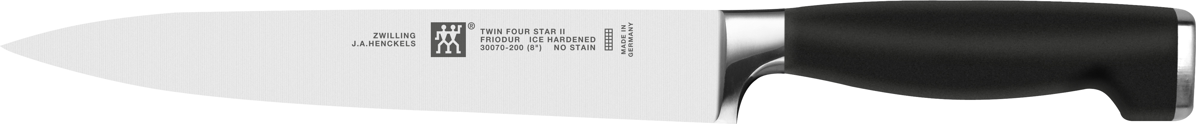 Die Messer der Zwilling TWIN Four Star Serie sind dank SIGMAFORGE® aus einem Guss präzisionsgeschmiedet. Dadurch erhält jedes einzelne Messer die Basis für gute Schneideigenschaften. Die Qualität und hohe Präzision der Messer werden durch die Verwendung von einem besonderen Edelstahl, der ZWILLING-Sonderschmelze, maßgebend bestimmt. Zusätzlich ist die sogenannte FRIODUR®-Klinge eisgehärtet und wird dadurch besonders flexibel und beständig gegen Korrosion.
